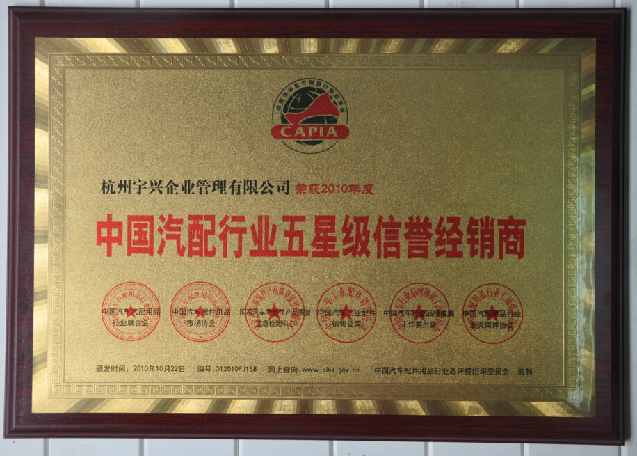 中國(guó)汽配行業(yè)五星級(jí)信譽(yù)經(jīng)銷商中國(guó)汽車汽配用品行業(yè)聯(lián)合會(huì)理事單位